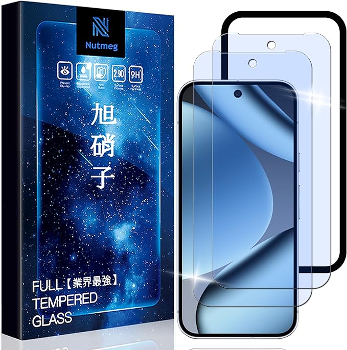 Nutmeg【ブルーライトカット】【2枚セット】Google Pixel 10 Pro XL/9 Pro XL ガラスフィルム ブルーライトカット ガイド枠付き フィルム グーグルピクセル 10 プロ xl 保護フィルム 強化ガラス 日本製旭硝子採用 目の疲れを軽減します 耐衝撃 反射防止 気泡防止 硬度9H 飛散防止 超高質感 貼り付け簡単 スクラッチ防止