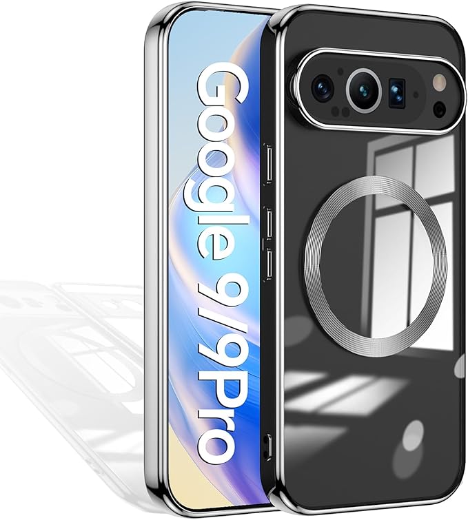 GYOKUYU [透明ケース]for Google Pixel 10/10 pro/9/Google Pixel 9 Pro ワイアレス充電対応 携帯ケース MagSafe対応 グーグル ピクセル10 黄変防止 操作便利 超薄型 用カバー(シルバー)