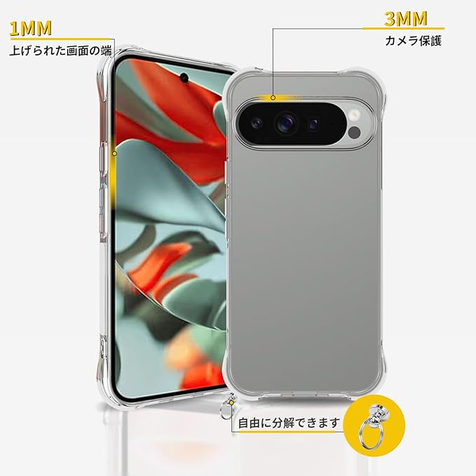 For Google Pixel 10 Pro XL 用 ケース カバー 軽量 TPU ソフト クリア 肩掛け 首かけ 調節可能 紐付き 取り外し可能 【NOUKAJU】For Google Pixel 10 Pro XL スマホケース ストラップ付き ショルダーストラップ 長さ調整可能 なワイヤレス充電邪魔ない