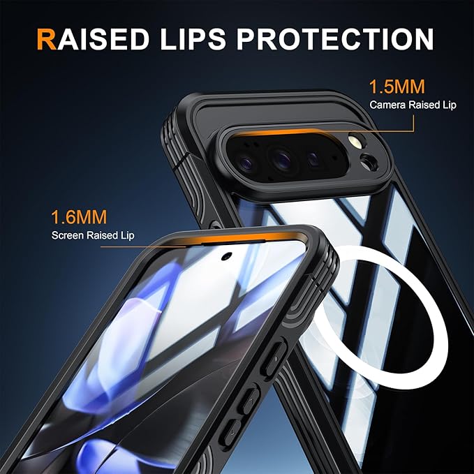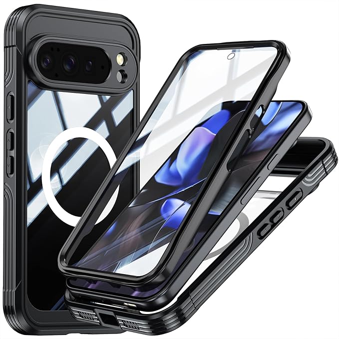 Lafunda Google Pixel 10 Pro XL 用 ケース 360度全面保護 MagSafe対応 透明 スマホカバー 角保護強化 ガラスフィルム付き アウトドア 耐衝撃 黄ばみなし傷つけ防止 落下防止 ワイヤレス充電対応 Google Pixel 10 Pro XL 用 マグネットスマホケース ブラック