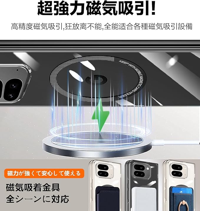 【Magsafe充電対応】裏面にマグネットが搭載されており、Magsafe充電やワイヤレス充電に対応でき、素早く安定した充電が可能です。磁気吸着機能で、車載スタンド等に合わせることもできます。