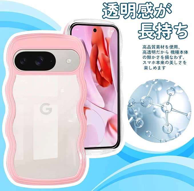 Google Pixel 9 用 ケース Google Pixel 9 Pro 用 ケース クリア ウェーブ ピクセル9 プロ 用 カバー 透明 韓国 波状エッジ ピクセル9 用 スマホケース ピンク