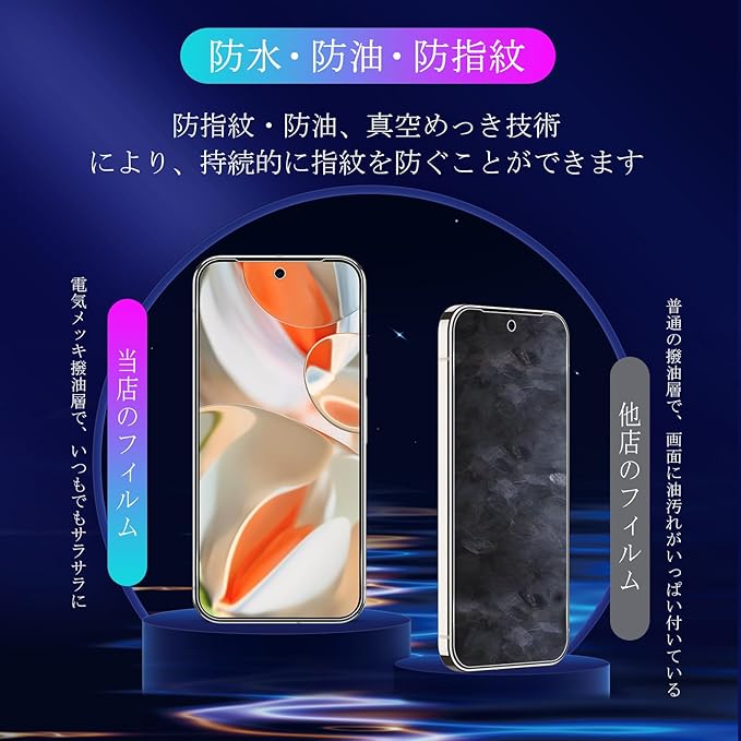 ☺☞【簡単に貼り付け】ガラスフィルムをLCD画面に置くだけで、簡単に自然に吸着して貼り付けることができ、表面にドット技術スタイルの極めて小さな穴を使って、空気漏れの問題を大幅に改善し、気泡の発生を避けます。誰でも簡単、綺麗に貼り付けます。【指紋防止、撥水、油防止】保護フィルムは真空電気メッキプロセスを使って、AF分子防油層を備えて、非常に滑らか、耐水性も高くて、耐油性にも優れます。油や指紋が付着しにくいので、汚れがあれば、サッと拭くだけできれいになります。指触りもスッキリ、画面操作もストレスなくて、とても快適に使いいただけます。一気に液晶画面の油、ホコリ、指紋の付着、キズ、磨耗などの悩みを解決しました。