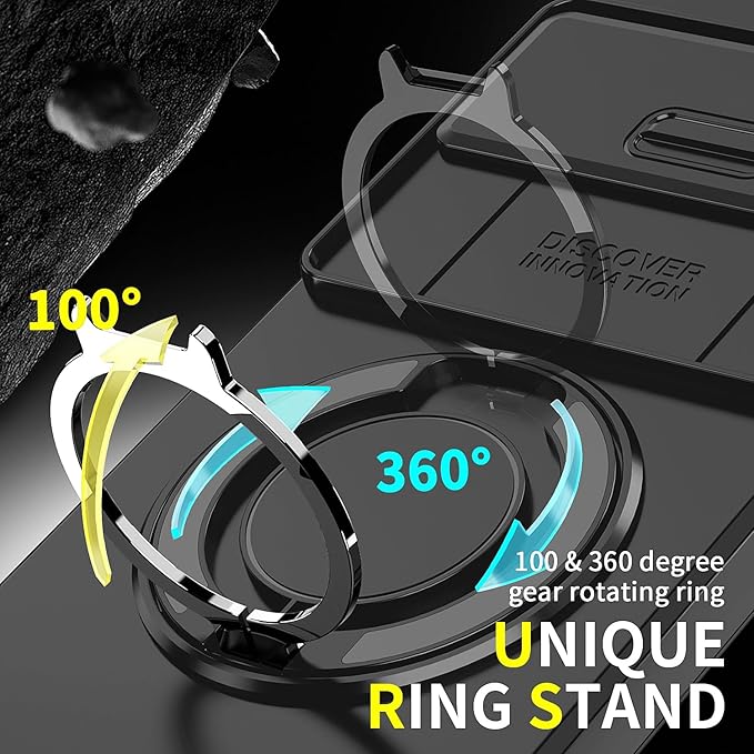 360 回転スタンド・向きも角度も自由自在:多機能スタンドとリング一体型の斬新なデザインです;スタンドを開くだけで好きな角度でスマホを楽しめます;スタンド部分を指にかければスマホリングとしても使えます(リング部分を持ったまま強い力を与えないようにご注意ください)