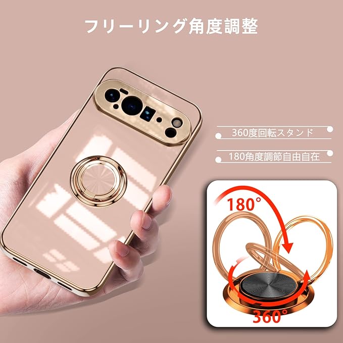 【リング付き&スタンド機能】360度回転スタンド、180角度調節自由自在に使用可能です。マグネット式車載スマホマウントホルダー に対応でき。Google Pixel 10 Pro XL ケースを横置きにするとスタンド機能になり、片手で携帯を操作でき、滑り止め、強奪、落下などのことを防げます。いつでもどこでもfacetime、ドラマや映画の鑑賞などの娯楽番組を思い切り楽しめます。
