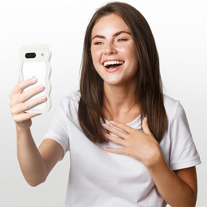 QLTYPRI Google Pixel 9 / 9 Pro 用 ケース クリア ウェーブ ピクセル 9 ソフト TPU うねうね 透明 ケース おしゃれ 韓国 可愛い 薄型 軽量 耐衝撃 波状フレーム スマホケース ワイヤレス充電対応 ストラップホール付き(Google Pixel 9/9 Pro、 ホワイト)