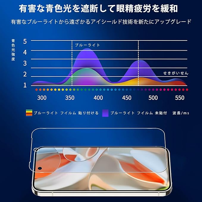 【オリジナル画面・高い光線透過率】高い透過率でき、オリジナル画像の明るさを再現し、そしてアンチグレア、クリアな画像があり、オリジナルの美しい画像を再現し、視覚効果をアップします。更に長期に使用しても、目が疲れにくくて、視力を保護します。
