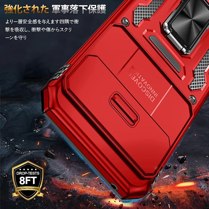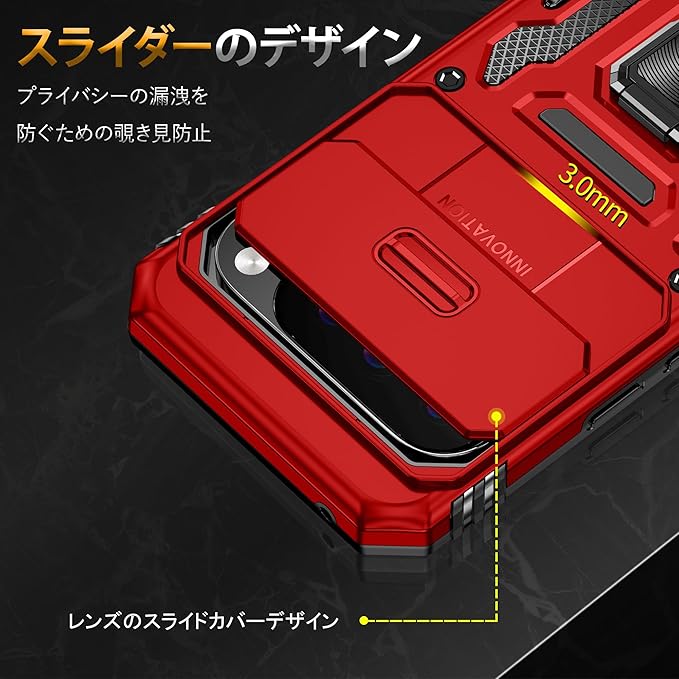 YULNCUZ Google Pixel 10 Pro XL 対応 ケース リング付き スライド式カメラカバー 耐衝撃 スタンド機能 車載ホルダー レンズ保護 ピクセル10 プロ xl 対応 スマホケース PC TPUバンパー 防塵 人気 落下防止 滑り止め 指紋防止 携帯カバー 赤 K358
