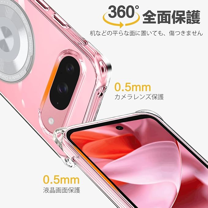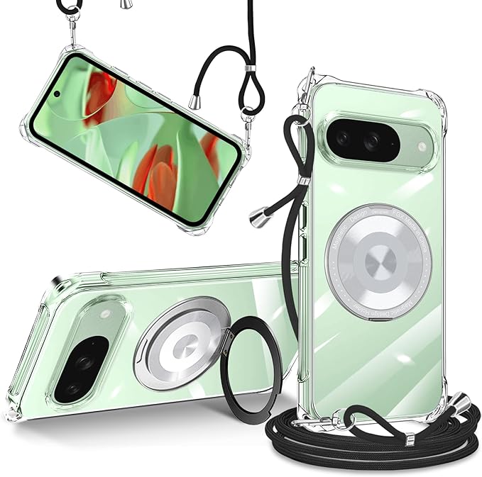 tuulaasii For Google pixel 9 用 ケース pixel 9 pro ケース クリア 透明 MagSafe対応 マグセーフ ワイヤレス充電 リング付き スタンド機能 ストラップ付き 調節可能 ショルダー マグセーフ対応 マグネット搭載 TPU ストラップホール付き グーグル ピクセル 9/9 Pro スマホケース 肩がけ 首掛け 紐付き 耐衝撃 全面保護 カバー (クリア)