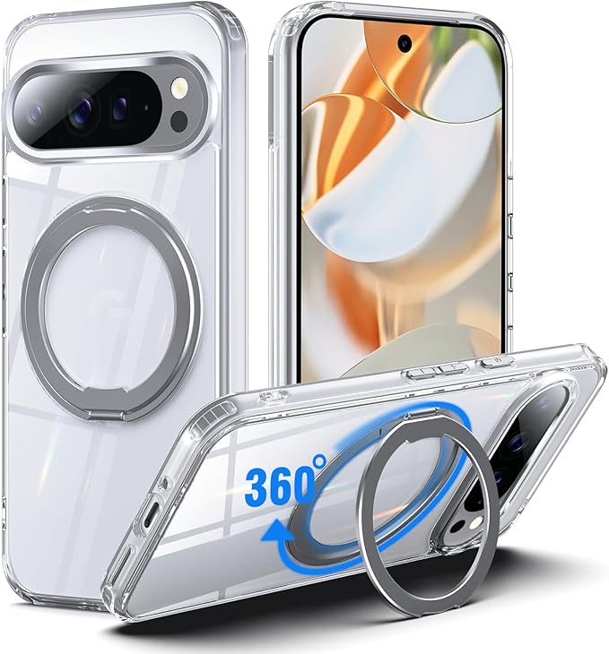 DASFOND Google Pixel 9 Pro XL ケース [MagSafe 対応] 米軍MIL規格の落下防止 360 回転式リングキックスタンド 透明電話ケース グーグルピクセル9プロXL カバー 6.8 インチ クリア