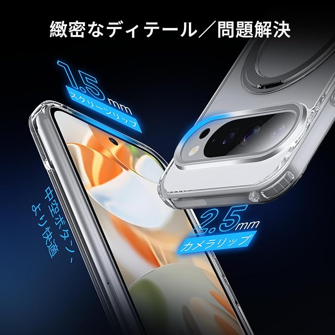【2 in 1 磁気ケース インビジブル ホルダー】2024 新しい google pixel 9 pro xl 保護ケース、磁気リングとスタンド機能の両方を提供します。内蔵のアルミニウム製磁気リングは、開いたときに縦または横モードで安定して立つことができ、背面は完全に見えません。 チタン合金と無誘導減衰電話ケースホルダーは、角度を約120 反転できます。 ファイルを参照したり、ビデオを視聴したりするときはいつでも、ハンズフリーで行うことができます