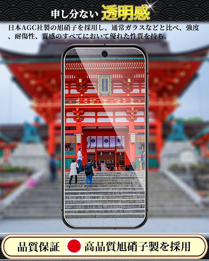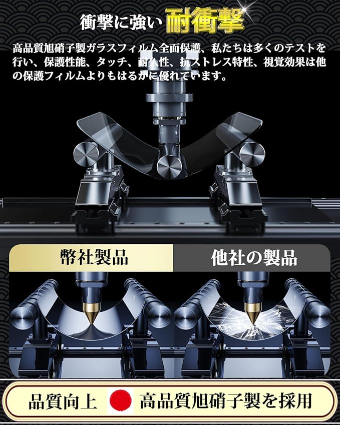 【表面硬度9H!飛散防止】日本製素材旭硝子製を採用しております、高品質な素材で衝撃を緩和し画面の破損を最低限まで抑えます。9H硬度で、ハードコーティング技術により、衝撃を緩和し画面の破損を最低限まで抑え、すり傷や指紋からもスクリーンをしっかりと保護します。