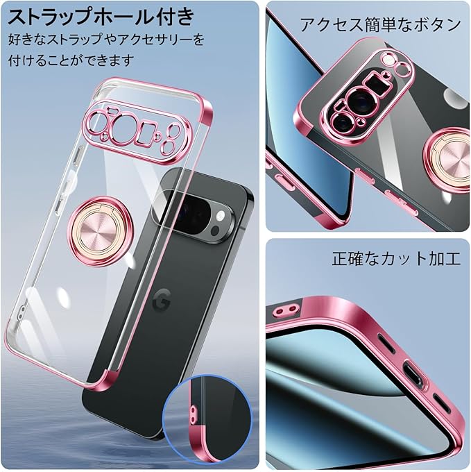 Cexitesuo for Google ピクセル 10 Pro XL ケース リング付き クリア ピクセル10Pro XL ケース 耐衝撃 スタンド機能 ストラップホール付き 軽量 スリム ソフト TPU ピクセル 10pro xl カバー 透明 TPU 擦り傷防止 落下防止 (ローズゴールド)