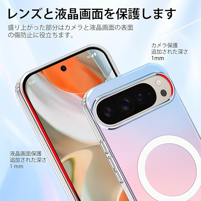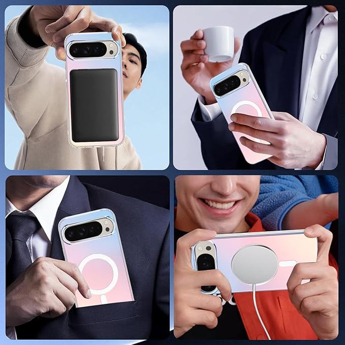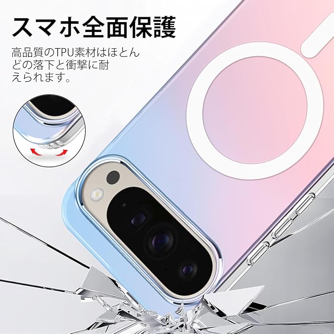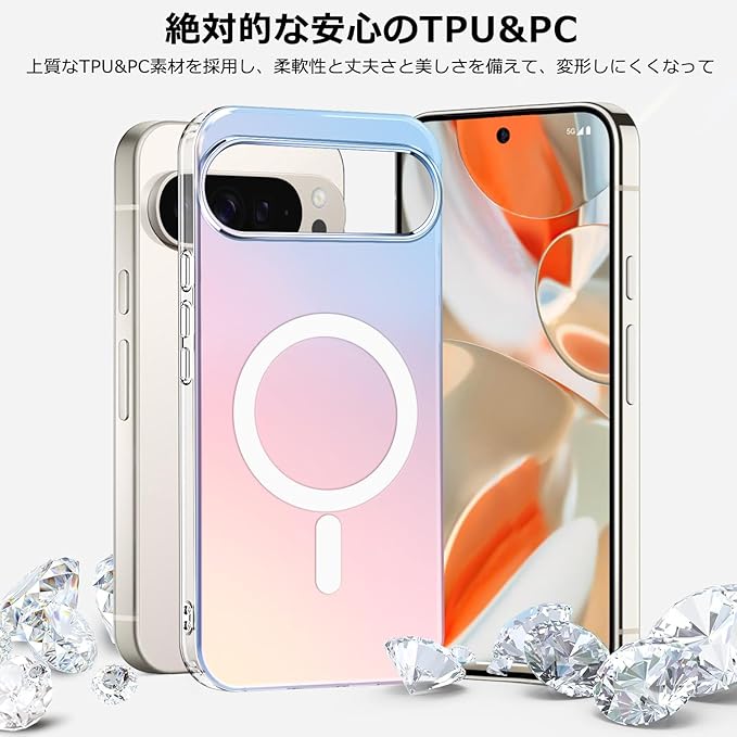 ZHIYIJIA Google Pixel 9 Pro XL 用 ケース MagSafe対応 半透明 変色 グラデーション ワイヤレス充電 耐衝撃 マグネット搭載 ピクセル 9pro xl ケース マグセーフ対応 耐久性 黄ばみなし 滑り止め 指紋防止