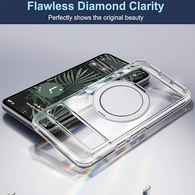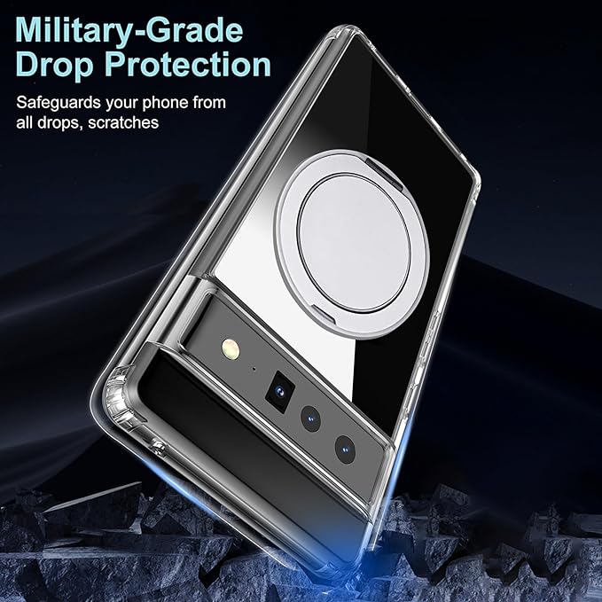 Google Pixel 6 Pro用磁気スタンドケース - MagSafe、360 回転可能なリングキックスタンドスリムフィット耐衝撃保護携帯電話ケースに対応 - クリア