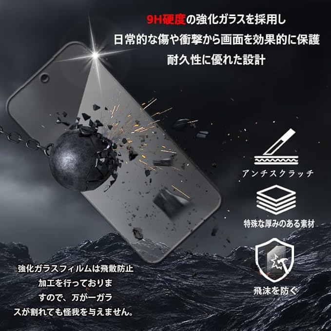 優れた保護性能: 高硬度強化ガラスを採用し、傷や衝撃からiPhone 16の画面を効果的に保護