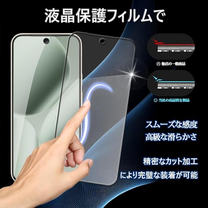 アンチグレア機能: Google Pixel 10 Pro XL ガラスフィルム の表面は反射防止タイプで、目の疲れを軽減する特殊コーティング。長時間の使用でも快適な視認性を確保