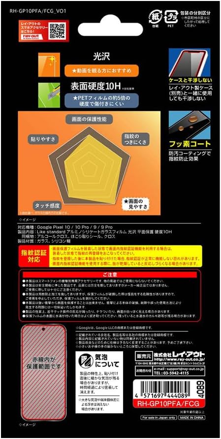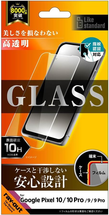 レイアウト Google Pixel 10 / Pixel 10 Pro用 ガラス フィルム アルミノシリケートガラス 光沢 平面保護 硬度10H 指紋認証対応