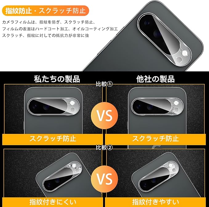 【指紋防止&取付簡単】 用 ルピクセル 10 Pro XL カメラ保護フィルムには疎油性コーティングが施されているので、カメラ表面には指紋が付きにくくなり、清潔でクリアな状態を維持できます。レンズ保護フィルムの粘着面に高品質な自己吸着層が施されており、保護フィルムを軽くカメラの上に置き、真ん中から周りに押すことで、気泡がなく簡単に取り付けることができます。