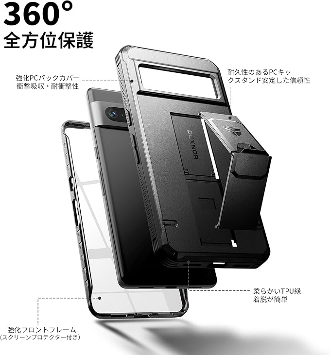 Dexnor Google Pixel 7 Pro 5G用 ケース [内蔵スクリーンプロテクター&キックスタンド] 軍用規格 耐衝撃 強化防護カバー(ブラック)
