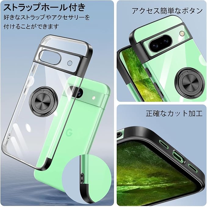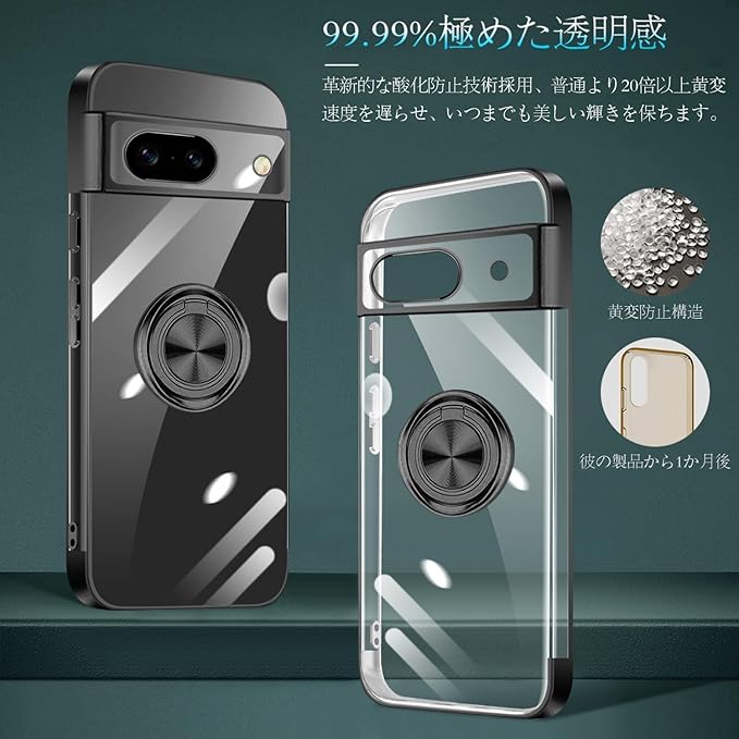 Google Pixel 9 Pro XL ケース リング付き クリア Pixel9Pro XL ケース 耐衝撃 スタンド機能 ストラップホール付き 軽量 スリム ソフト TPU ピクセル 9pro xl カバー 透明 TPU 擦り傷防止 落下防止 (ブラック)