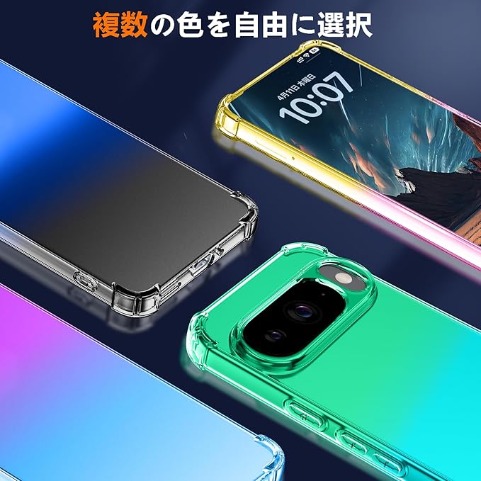 WOYSOBA 対応 Google Pixel 10 用ケース 耐衝撃 グラデーション Pixel 10 Pro 用カバー TPU素材 透明 衝撃吸収 ワイヤレス充電対応 レンズ保護 ピクセル 10/ 10 プロ ケース クリア Q-SXJB-GP10P-01