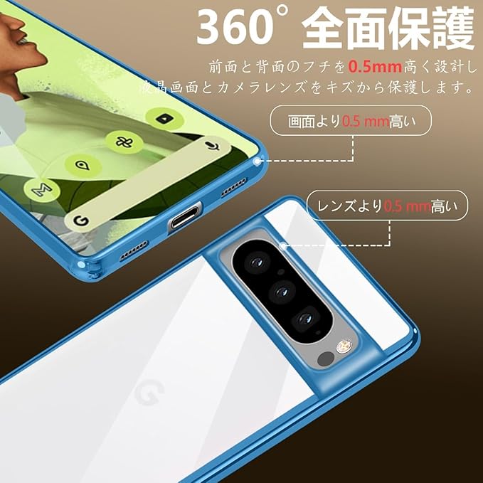 ONETIAOLONG に適合するGoogle Pixel8 Pro 用のケース クリア グーグル ピクセル 8Pro 用のスマホケース TPU素材 薄型 耐衝撃 カバー ストラップホール付き 落下防止 滑り止め (ブルー)