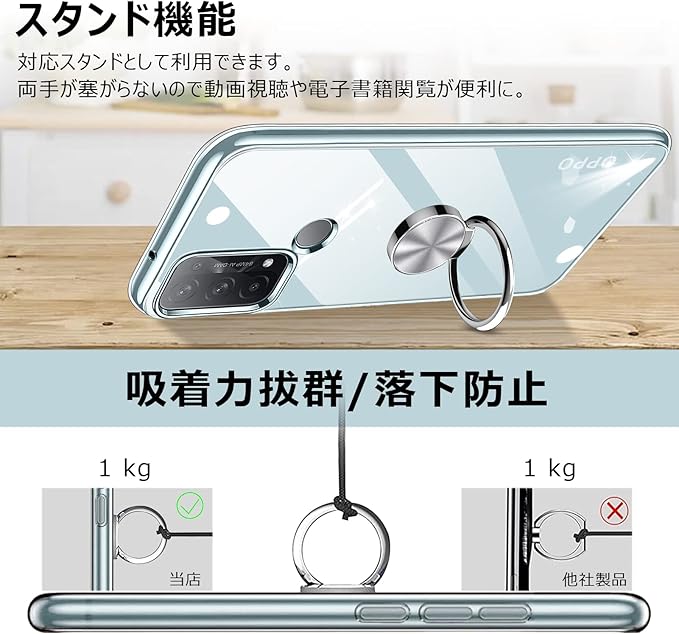 【360度回転式リング付き】360度回転可能、180角度調節可能、片手で携帯を操作でき、滑り止め、強奪、落下などのことを防げます。ケースを横置きにするとスタンド機能になり、持たず動画鑑賞などを楽しむことができます。