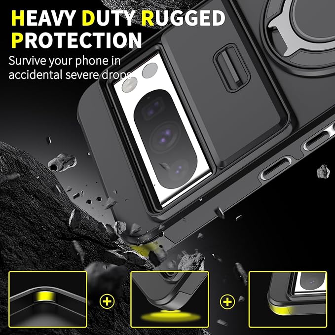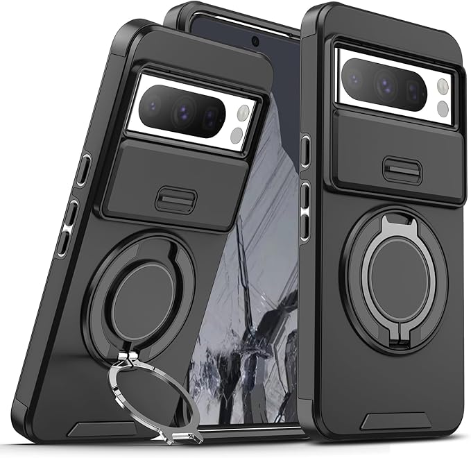 Anlalish携帯ケース 適用する Google Pixel 9 Pro XL ケース 持っているカメラ保護 耐衝撃 Google Pixel 9 Pro XL スマホカバー リング人 気 オシャレ車載ホルダー 対応 スライド 保護 カード (黒)