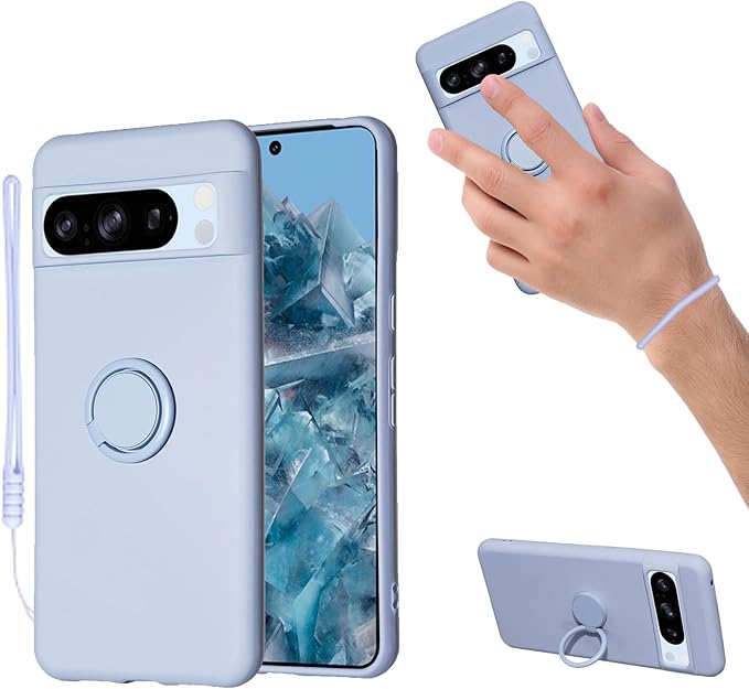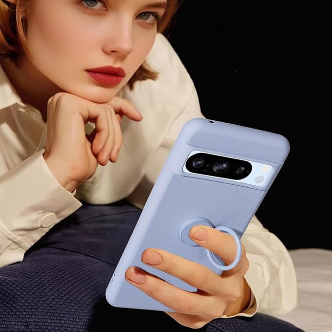 for Google Pixel 7 Pro ケース 液状シリカゲル親肌TPU新型携帯スタンド保護カバーカップル 放熱強純色極シンプル(Pixel 7 Proうすむらさき)