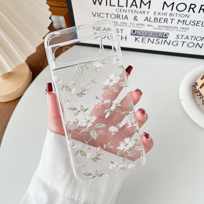 ZTOFERA Google ピクセル 8 用 フラワーケース おしゃれ クリア ケース 花柄 スマートケース 韓国 かわいい 薄型 軽量 柔軟な ソフト TPU ケース 耐衝撃 画面レンズ保護 Pixel 8 透明 携帯カバー (花と葉)