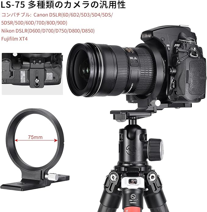 SWFOTO LS-75 リング式三脚座 ,横撮りから縦撮りへ,ARCA-SWISSタイプのクイックリリースプレート付き (75mm)