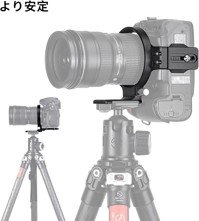 より安定:カメラとレンズはレンズリングに取り付けられ、底部クイックマウントにより三脚に取り付けられるため、全体の重心がカメラレンズの中間位置に位置し、よりバランスがとれ、より安定しています。