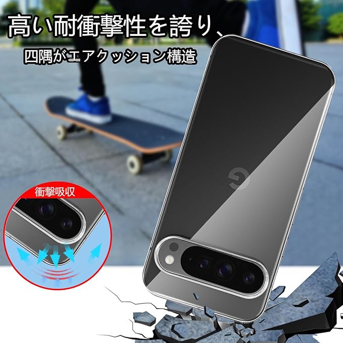 【対応機種】Google Pixel9 Pro XL用用の TPU耐衝撃ケース。それぞれ違う角度でコンクリートに落下させても本体は綺麗に無傷。TPU素材の変形しにくい性質と優れた耐久性で長くご愛用いただけます、保護はより周到である。※ご注意:お買い求めの機種を確認してからご購入をお願いします。