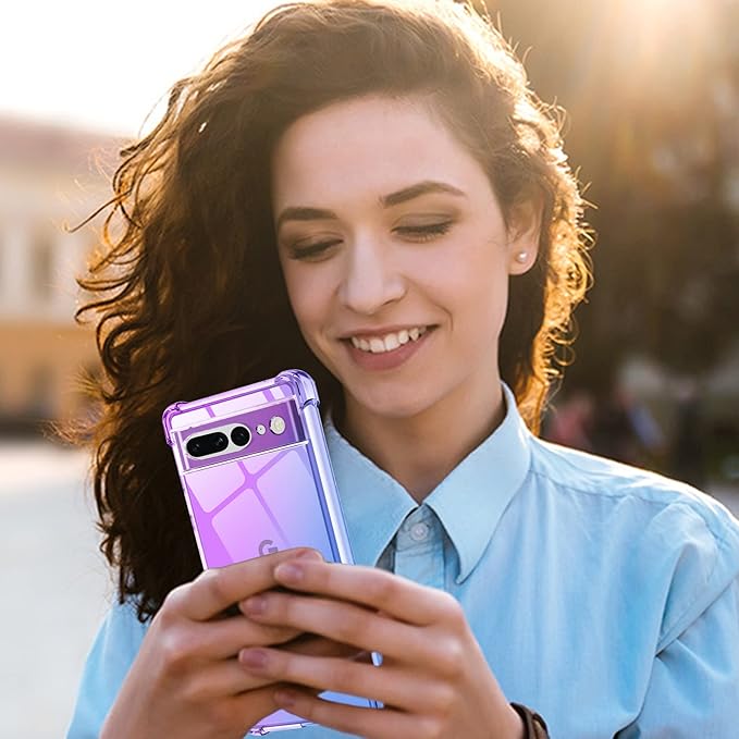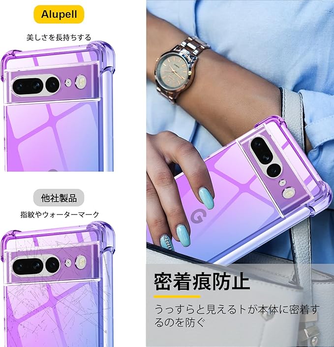 Alupell ケース 対応 7 Pro 用 クリア TPU 薄型 軽量シリコン 耐衝撃 グラデーション色 ケース スマホケース 指紋防止 防塵 一体型 人気 携帯カバー カバー(パープルブルー)