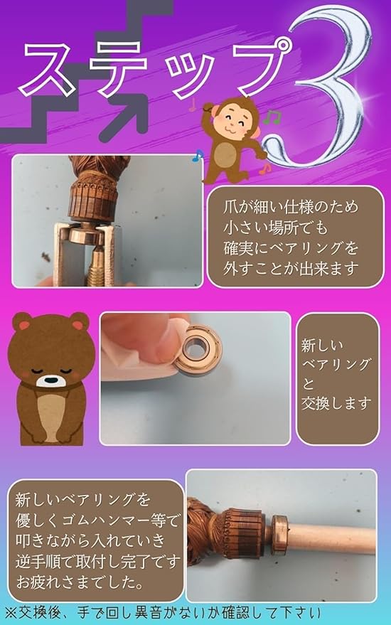 メンテナンス修理に使えるこちらのギヤプーラーとベアリングとベアリング入れ筒のセットは、モーターのベアリングによる錆 劣化 破損 欠損 摩耗など異音が発生した際にお使いいただけるベアリング交換セットです。轟音修理 家庭用ベアリング交換 モーターのベアリング交換 アングルグラインダーベアリング交換 電気ディスクグラインダーモーター修理など幅広くお使いいただけます。