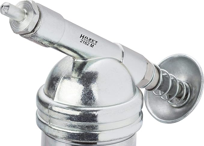 HAZET(ハゼット) 2162M ミニグリースガン グリス注入器 50度90度ニップル 精密潤滑工具 容量80g 最大圧力1000PSI(69bar) 自転車メンテナンス ベアリング給油 機械整備 チェーン注油 インパクトレンチ用 軸受け 片手操作 全長145mm メタル製 プロ用 ドイツ製