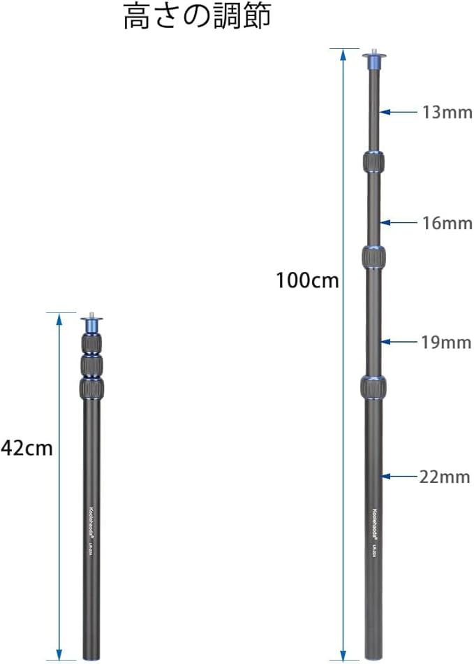 Koolehaoda 三脚延長チューブ 4セクション (100cm) アルミニウム三脚センターコラムエクステンダー ジンバル延長ポール ハンドヘルド延長ポール 伸縮ポール 三脚/DSLRカメラ用 LR-224