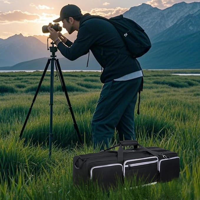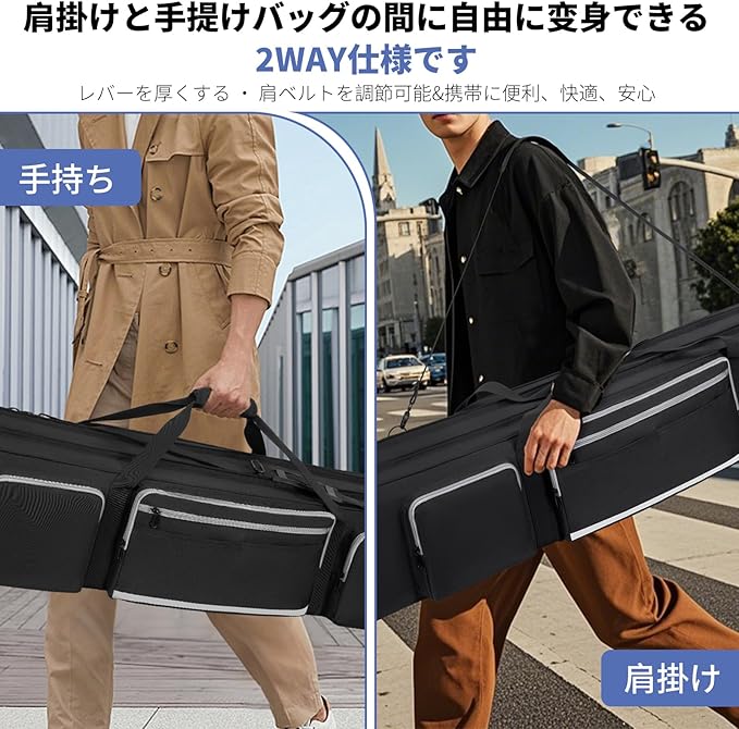 BQKOZFIN 三脚ケース 132x25x25cm キャリーバッグ ライトスタンド /マイクスタンド 収納バッグ 防水 厚手クッション入り 手持ち/肩掛け/斜め掛け 撮影用 機材ケース ポール ケース 三脚アクセサリ (大容量)