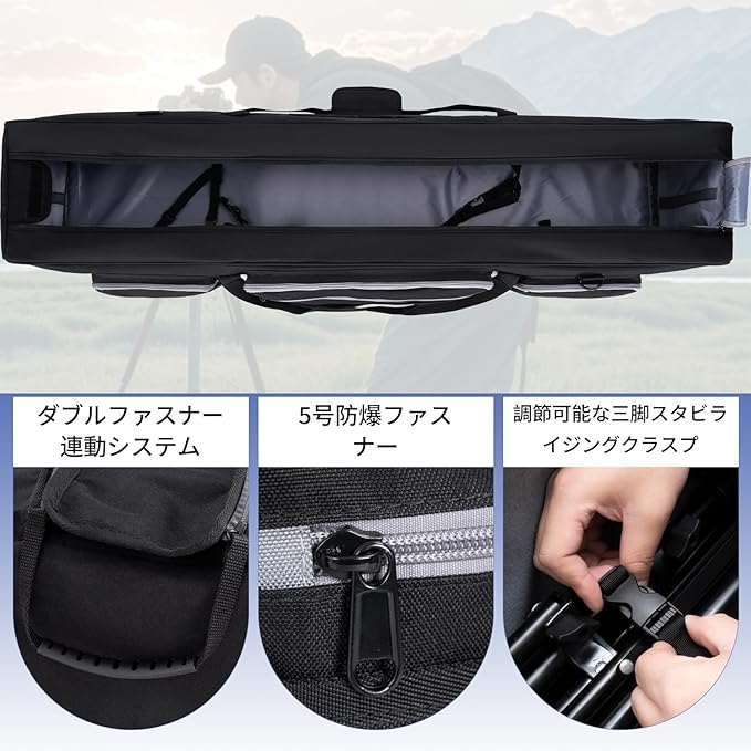【製品情報】 寸法:52インチ三脚ケース、長さ132 x 幅25 x 高さ25 cm、ブラック 材質:(外層)900 D防水材質+(裏地)210 D暗号裏地+(胴体充填)真珠綿+(底板)PP板+白鳥綿布 高品質材質:良質な材料を選んで製造し、耐摩耗耐引裂、防水耐撥水性だけでなく、全体の耐久性と質感を向上させた。