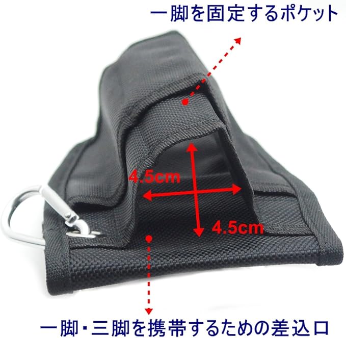 腰ベルトに付けて、カメラの一脚や三脚を固定できるホルダーです。
