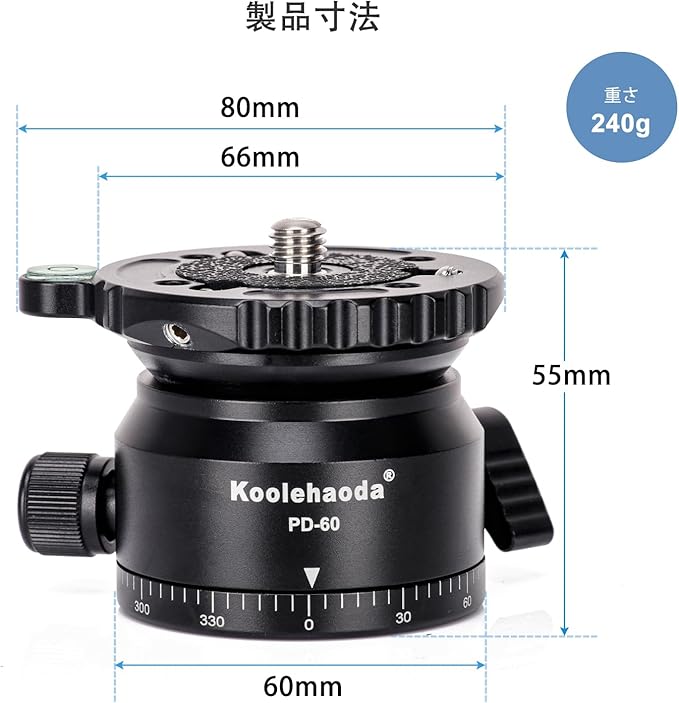 Koolehaoda 三脚レベリングベースカメラレベラー、傾斜15 、3/8 "ネジ、オフセット水準器、ビデオヘッド、三脚、一脚用360 パノラマベース(PD-60)