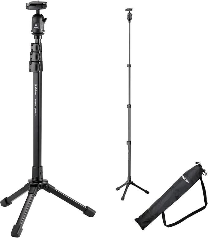 狭い場所でも立てられる便利なカメラスタンド。気軽に持ち運べる軽さが魅力。携帯性重視の自由雲台を装備したモデル。