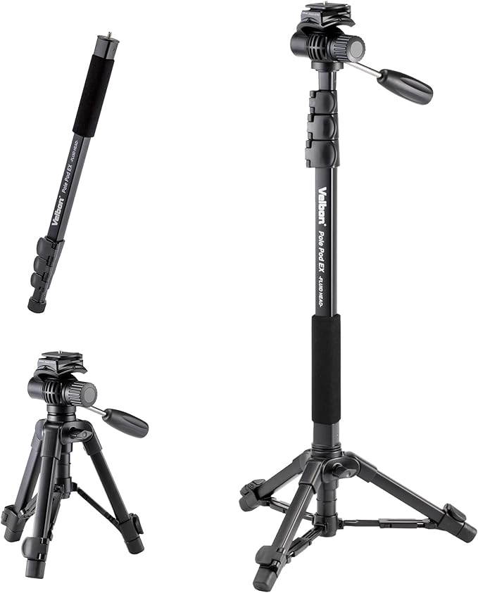ベルボン Velbon スタンド型一脚 ポールポッド EX フリュードヘッド AZ 4段 レバーロック 脚径23mm フリュード雲台 ビデオ雲台 クイックシュー対応 アルミ脚 卓上三脚へ組み換え可能 Pole Pod AMZPPODEX-FLHD