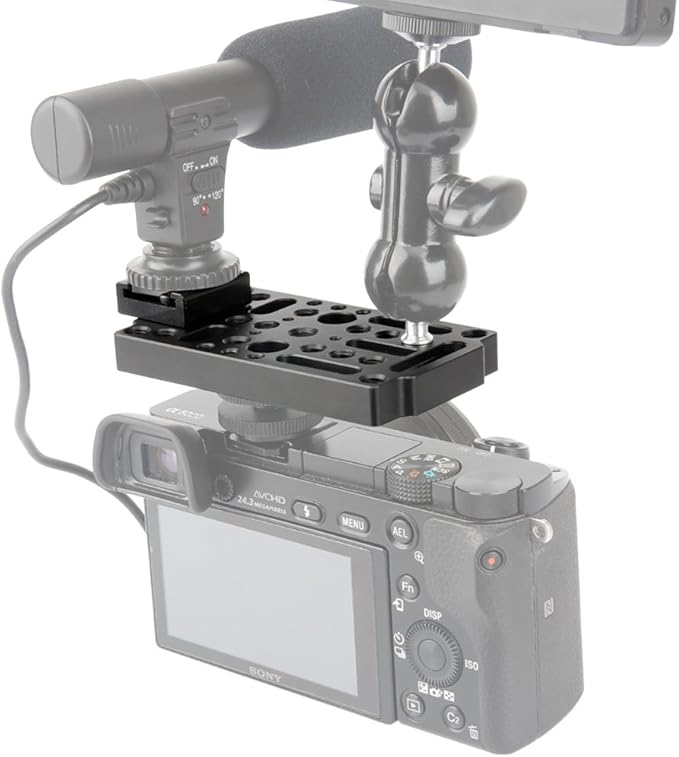 NICEYRIG カメラチーズプレートとコールドシュー付き 2イン1 カメラプレート1/4 & 3/8 ネジ穴付き アルミ合金製 多功能カメラアクセサリ 汎用マウントプレート ―147