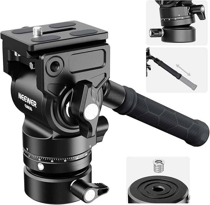 NEEWER 三脚流体雲台 +/-7 レベリングベース(Φ48mm)付き 金属製 コンパクト パンチルト Arca型QRプレート/伸縮ハンドル付き ビデオ、 フルード、 自由、 雲台 フルードヘッド ヘッドマウント カメラ/DSLRカメラ用 最大荷重5kg GM35
