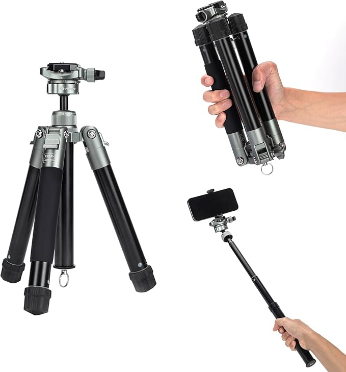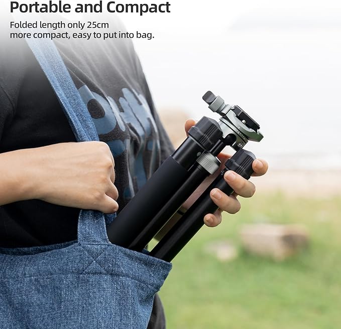 軽量でポータブル: 4段の脚は、ミニ三脚の高さを21.6CMから152CMまで調節でき、25CMまで折り畳んでキャリーバッグに収納できます