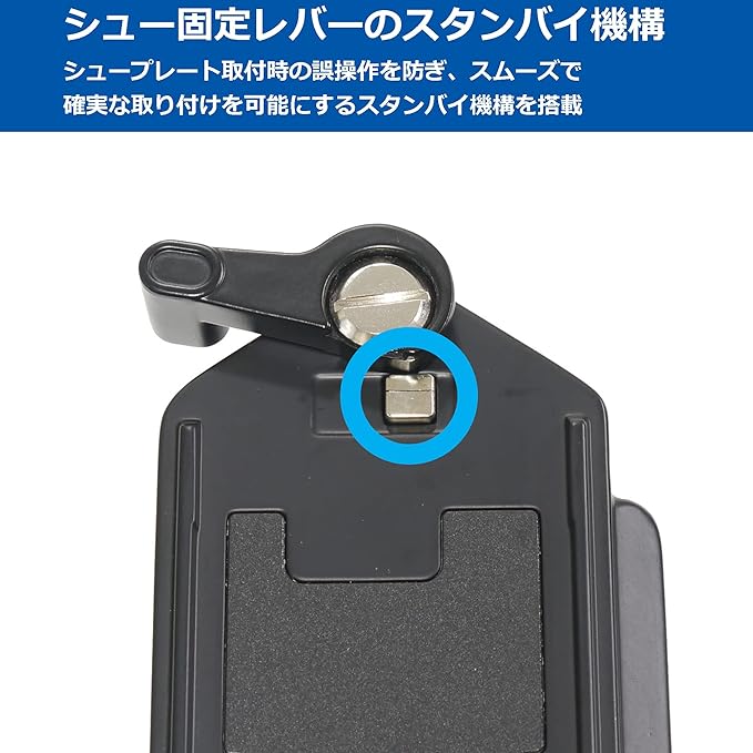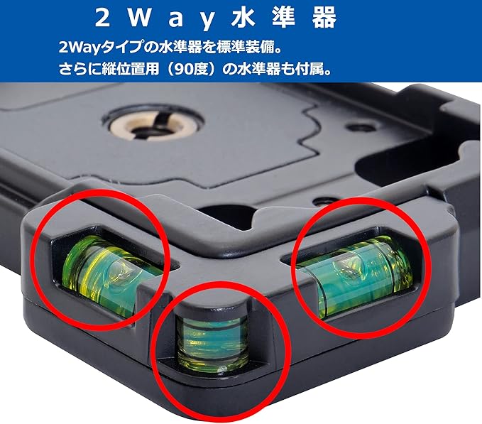 シューベースのみ(プレート別売)。2Way水準器や中判カメラ用スペアシューなど機能も充実。