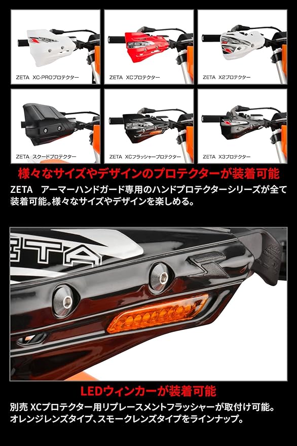 ZETAアーマーガード専用のハンドプロテクターシリーズが全て装着可能。 様々なサイズやデザインを楽しめる。