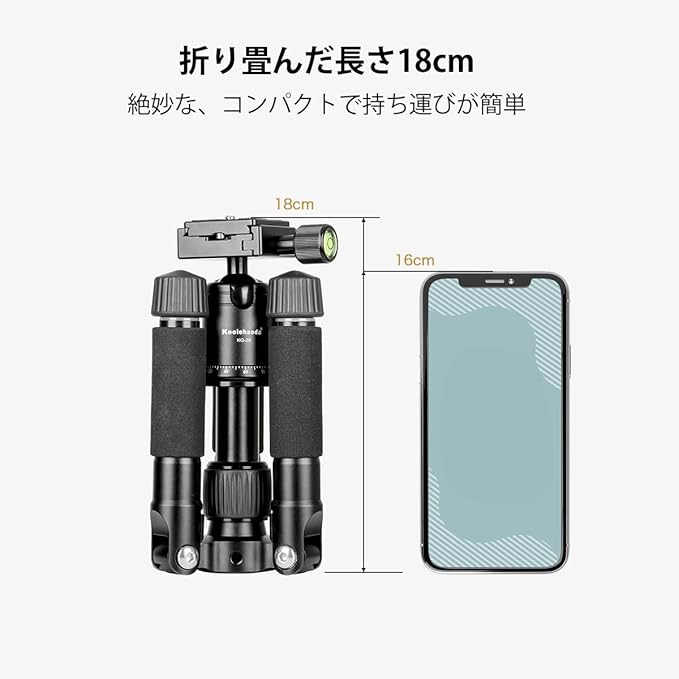 三脚の最小高さは18cmです、より小さく、より軽く、より近い距離でのマクロ撮影に最適です。地上レベルの撮影を行うためのソリューションでもあります。